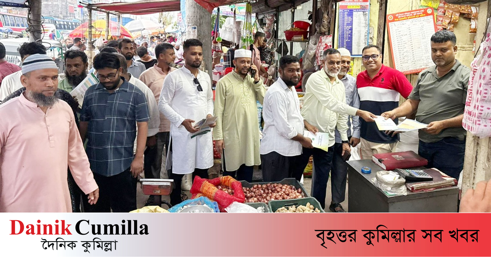 পিআর পদ্ধতিতে জাতীয় নির্বাচন অনুষ্ঠানের দাবিতে জনমত গঠনের লক্ষ্যে কুমিল্লার চৌদ্দগ্রাম বাজারের ব্যবসায়ী ও পথচারীদের মাঝে লিফলেট বিতরণ করেছে উপজেলা জামায়াতে ইসলামী।