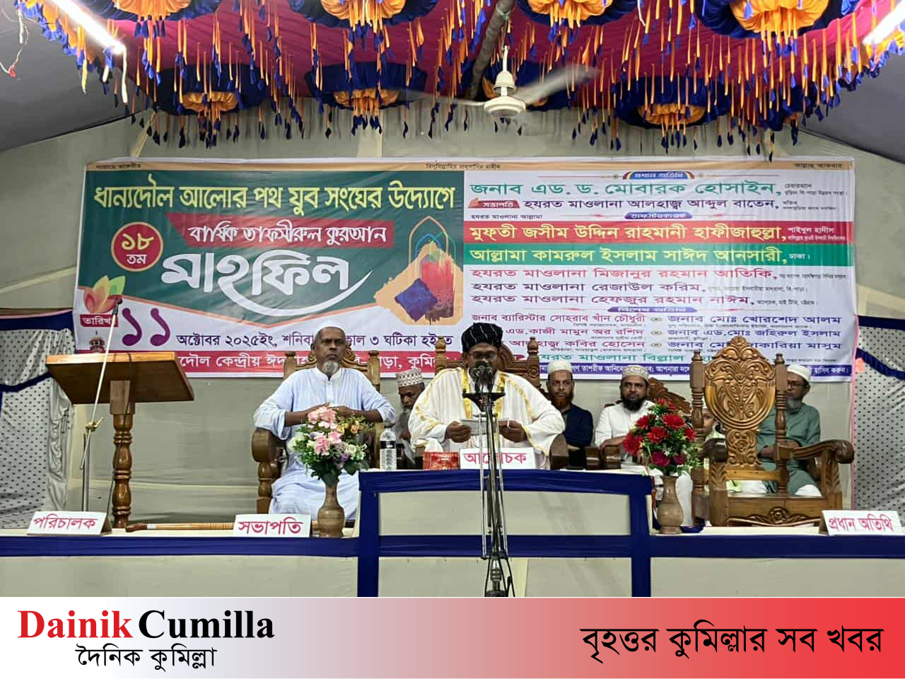 কুমিল্লার ব্রাহ্মণপাড়া উপজেলার ধান্যদৌল আলোর পথ যুব সংঘের উদ্যোগে ১৮ তম বার্ষিক তাফসীরুল কোরআন মাহফিল অনুষ্ঠিত হয়েছে।
