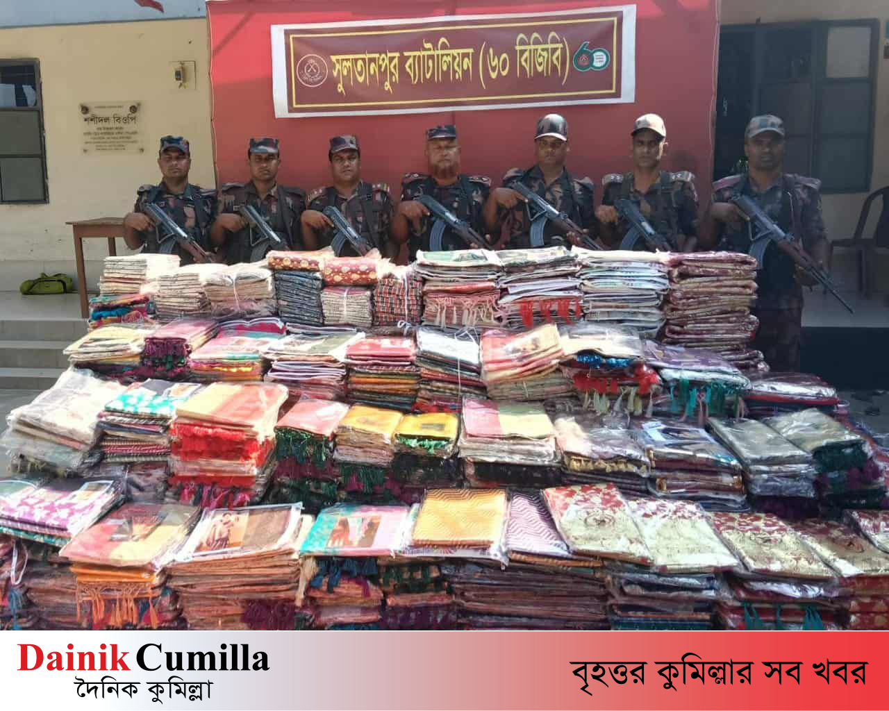 সুলতানপুর ব্যাটালিয়ন (৬০ বিজিবি) কর্তৃক দায়িত্বপূর্ণ এলাকার ব্রাহ্মণবাড়িয়া জেলার আখাউড়া, কসবা এবং কুমিল্লা জেলার ব্রাহ্মণপাড়া ও বুড়িচং উপজেলার সীমান্তবর্তী এলাকা হতে বিশেষ অভিযান পরিচালনা করে গতকাল (১৫ অক্টোবর) বুধবার ০২ কোটি ৫০ লক্ষ টাকা মূল্যের ভারতীয় বিভিন্ন প্রকার অবৈধ পণ্য জব্দ করা হয়।