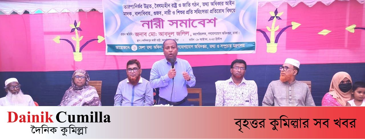 শনিবার ১৮ অক্টোবর জেলা তথ্য অফিস, কুমিল্লা আয়োজনে কুমিল্লা জেলার আদর্শসদর উপজেলার কালিকাপুর কাজী বাড়ী মাঠে নারী সমাবেশ অনুষ্ঠিত।