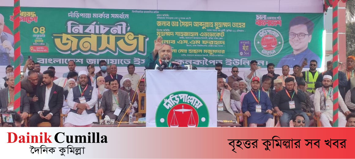 ডা. তাহের বুধবার (০৪ ফেব্রুয়ারি) বিকেলে কুমিল্লা চৌদ্দগ্রাম উপজেলার কনকাপৈত ইউনিয়নের তারাশাইল উচ্চ বিদ্যালয় মাঠে দাঁড়িপাল্লা প্রতীকের সমর্থনে জামায়াতের নির্বাচনী জনসভায় প্রধান অতিথির বক্তব্যে এসব কথা বলেন।