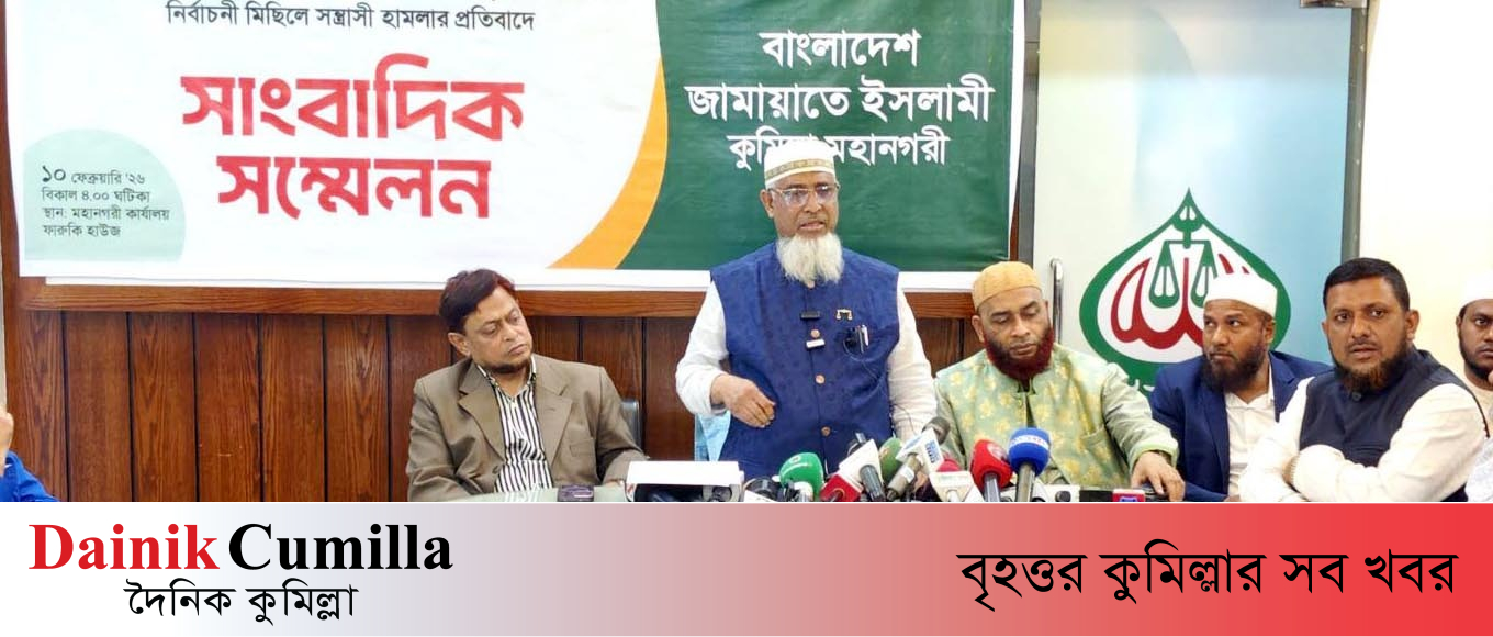 নির্বাচনী মিছিলে হামলার অভিযোগ, সুষ্ঠু নির্বাচন নিশ্চিত করার আহবান- কুমিল্লা-০৬ আসনের জামায়াত প্রার্থীর সংবাদ সম্মেলন - Dainik Cumilla