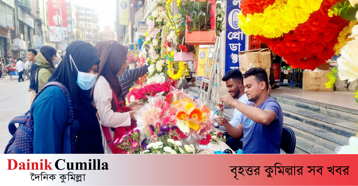 ফুল কিনতে আসা নগরীর কান্দির পাড়ের বাসিন্দা কুমিল্লা ভিক্টোরিয়া সরকারি কলেজের ছাত্রী সাবিহা জানান ভালোবাসা দিবস তাই বান্ধবীরা ফুল কিনতে আসলাম। ফুলের বেড়ি মাথায় দিয়ে আমরা ঘুরতে যাব।