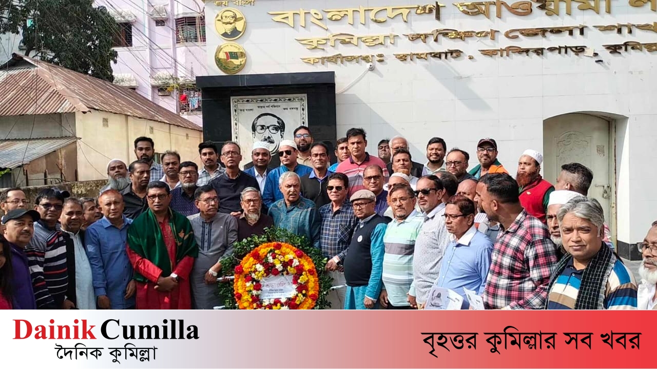 জাতির জনক বঙ্গবন্ধু শেখ মুজিবুর রহমানের প্রতিকৃতিতে ফুলেল শ্রদ্ধা নিবেদন করেন কুমিল্লা মহানগর আওয়ামী লীগের ভারপ্রাপ্ত সাধারণ সম্পাদক আতিকুল্লাহ খোকন। এ সময় তিনি কুমিল্লা মহানগর আওয়ামী লীগের সভাপতি ও সদর আসনের সংসদ সদস্য বীর মুক্তিযোদ্ধা আ ক ম বাহাউদ্দিন বাহারের প্রতি কৃতজ্ঞতা প্রকাশ করেন এবং তাঁর উপর অর্পিত দায়িত্ব নিষ্ঠার সাথে পালন করার অঙ্গীকার ব্যক্ত করেন। শনিবার (২৩ ডিসেম্বর) সকাল ১১ টায় কুমিল্লা মহানগর আওয়ামী লীগের দলীয় কার্যালয়ে বঙ্গবন্ধুর প্রতিকৃতিতে ফুলেল শ্রদ্ধা নিবেদন করেন।