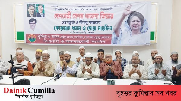 নেকবর হোসেন কুমিল্লায় বিএনপির চেয়ারপার্সন, সাবেক তিনবারের প্রধানমন্ত্রী বেগম খালেদা জিয়ার রোগমুক্তি ও দীর্ঘায়ু কামনায় দোয়া মোনাজাতের আয়োজন করা হয়। বৃহস্পতিবার (৪ ডিসেম্বর) বিকেলে নগরীর টাউনহল মাঠে