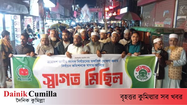 সাফায়েত উল্লাহ মিয়াজী, নাঙ্গলকোট (কুমিল্লা) প্রতিনিধি : ত্রয়োদশ জাতীয় সংসদ নির্বাচনের তফসিল ঘোষণা করায় নির্বাচন কমিশনকে স্বাগত জানিয়ে বাংলাদেশ জামায়াতে ইসলামী কুমিল্লার নাঙ্গলকোট পৌরসভার আয়োজনে স্বাগত মিছিল বৃহস্পতিবার রাতে